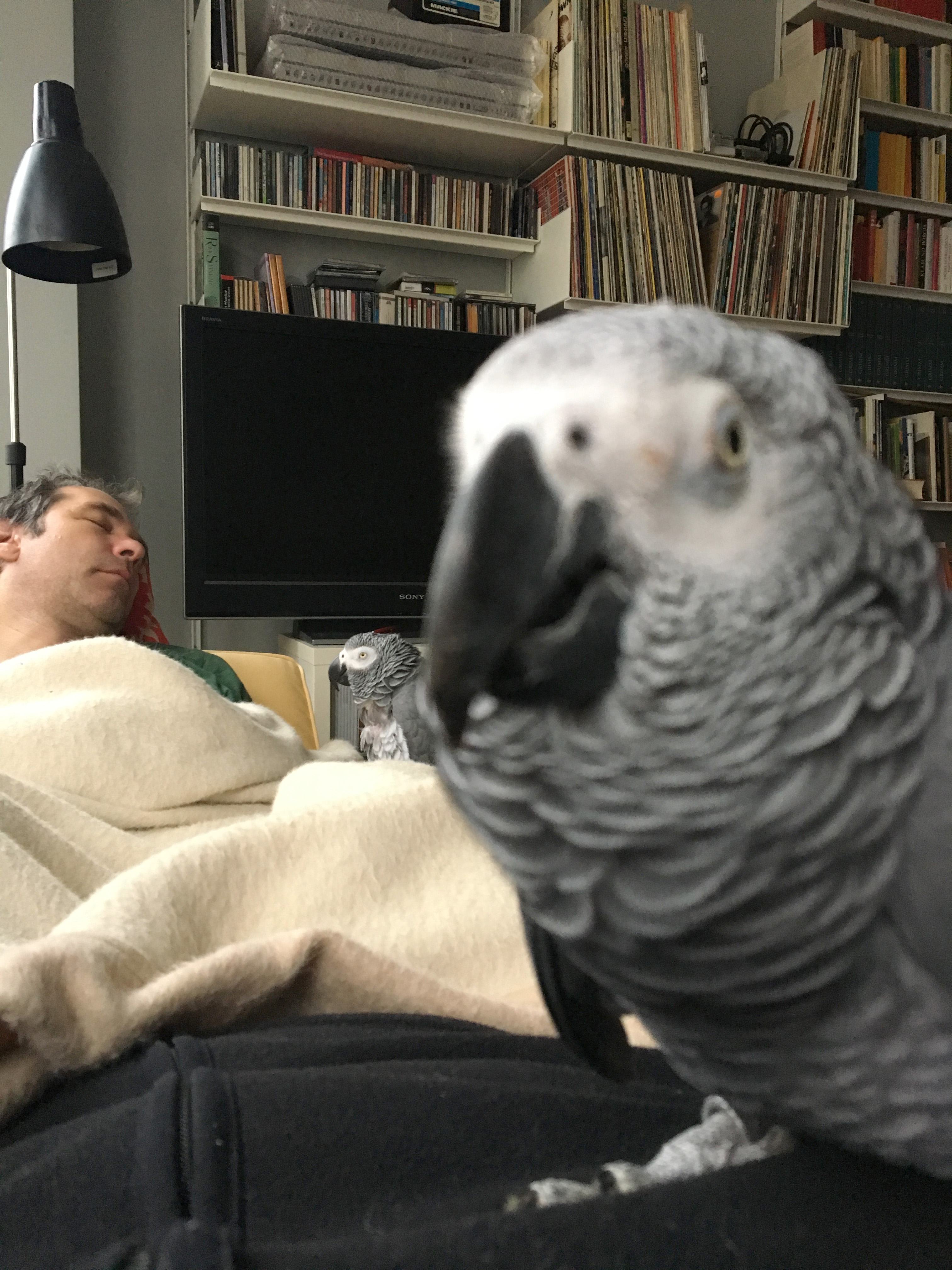 “Staying in the subject of learning from animals, Hörner/Antlfinger’s “Tales of a Modern Parrot: Living Entangled Lives in an Interspecies Art Collective” describes decades of the artists’ lives, living with and thinking about and creating art about and with animals. Describing such a long-time cooperation, the text also describes changes in the collective’s work that reflects changes in philosophy and politics concerning general shifts in multispecies co-habitations. It offers valuable insights into “a more reflective kind of anthropomorphism. One that does neither overestimate, nor does it underestimate the similarities between human and nonhuman animals.” Also, the parrots taught their human cohabitants and co-workers about new balances between work and play, a well-known relation for many artists – and perhaps academics, too — and the artwork with animals therefore poses fascinating questions relating to what “work” is. Does it make sense to say that pets work? And is it only human beings that create art?”